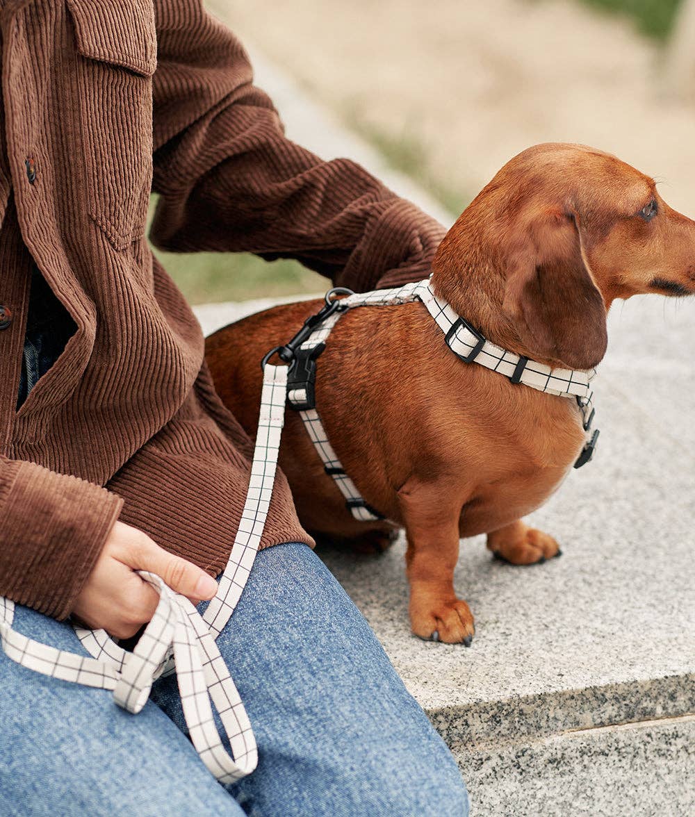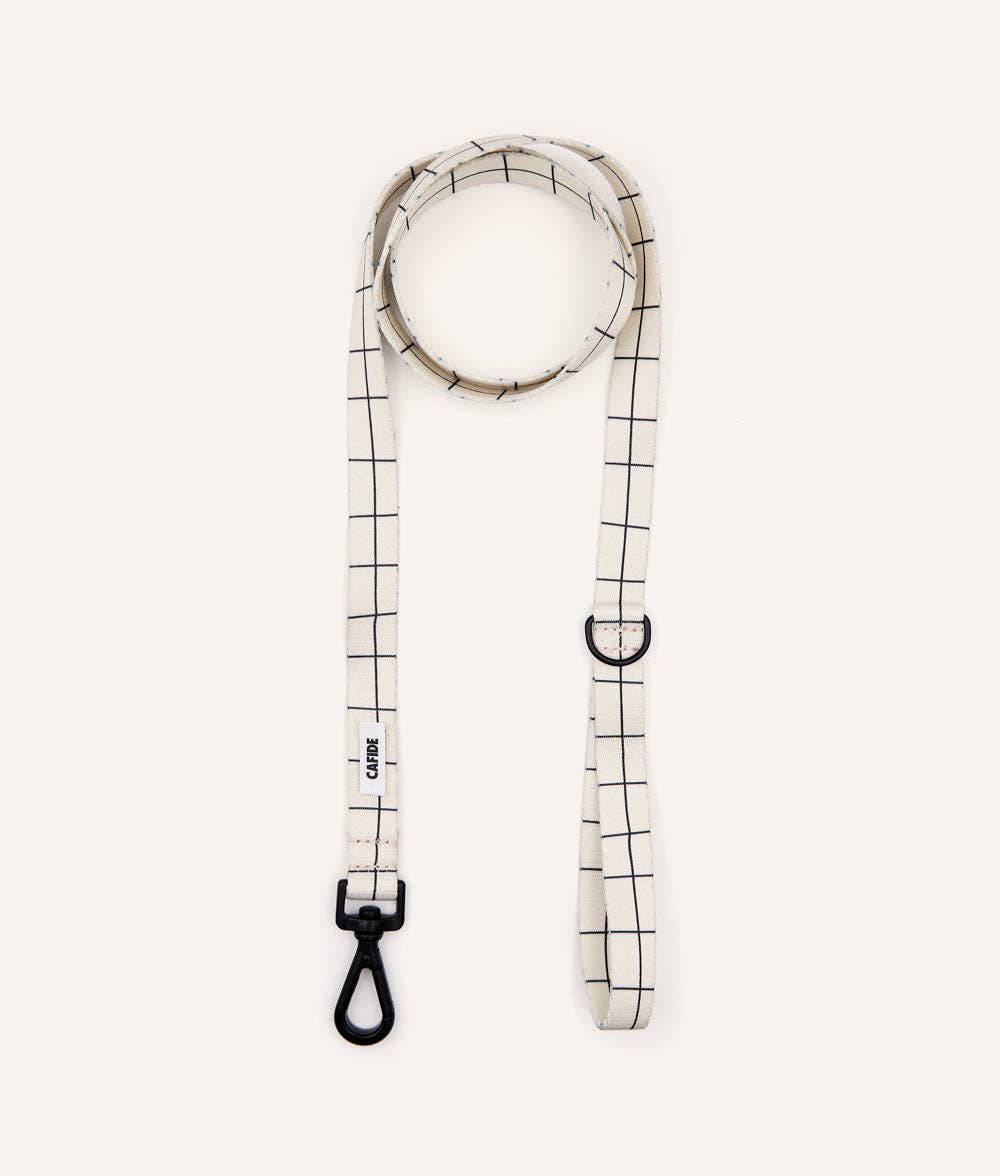 Laisse pour chien facile à nettoyer et fabriquée en tissu de bouteilles recyclées en Europe. Elle dispose d'un mousqueton en acier avec fermeture de sécurité et d'un anneau pour accrocher le porte-sac.