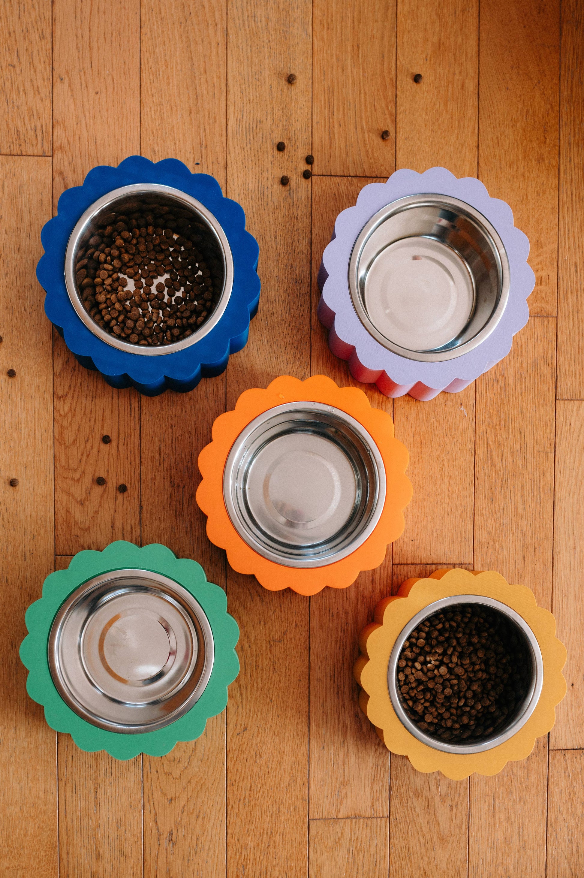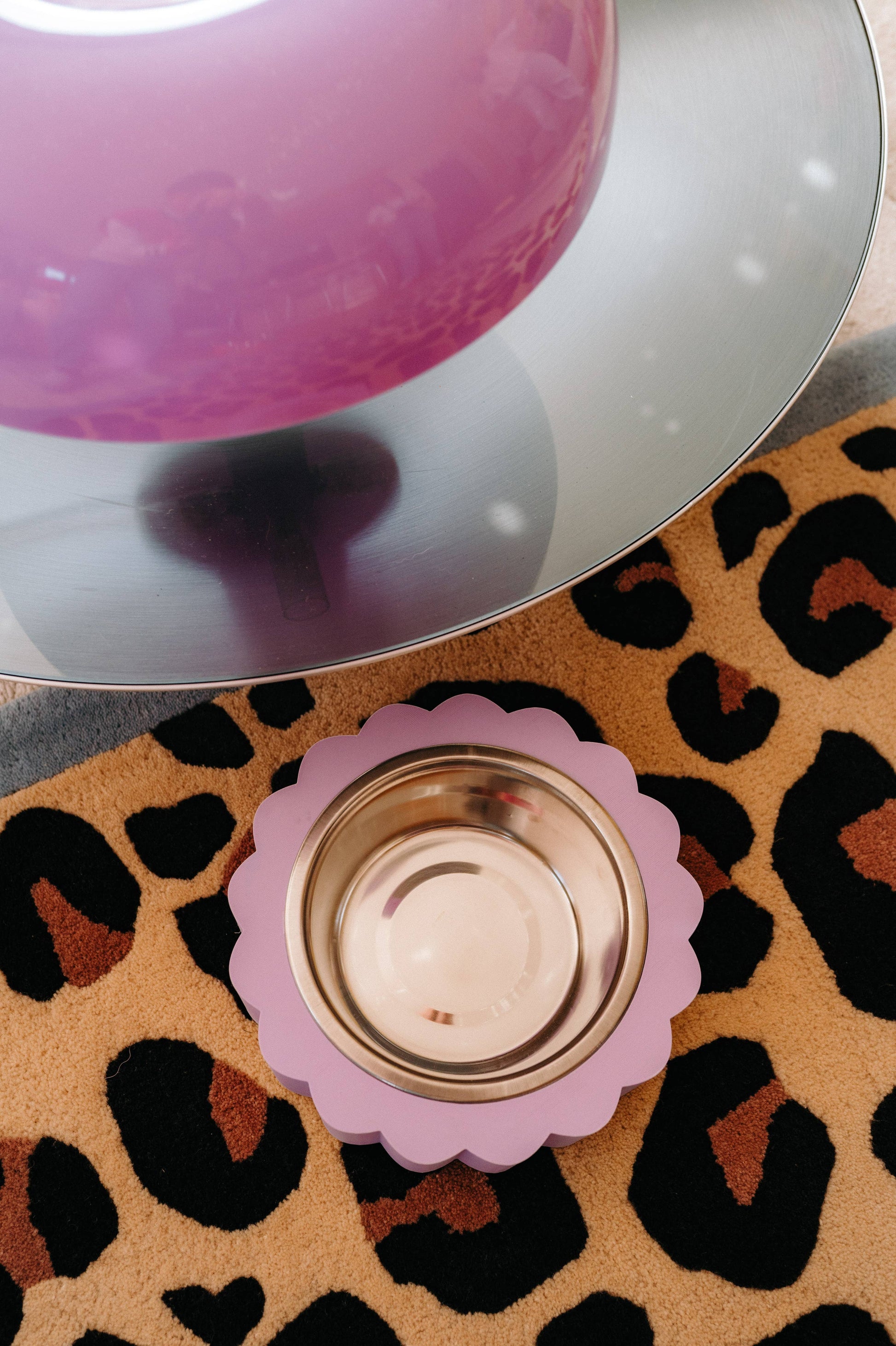 Support marguerite en PLA fabriqué en impression 3D contenant un bol en inox amovible.