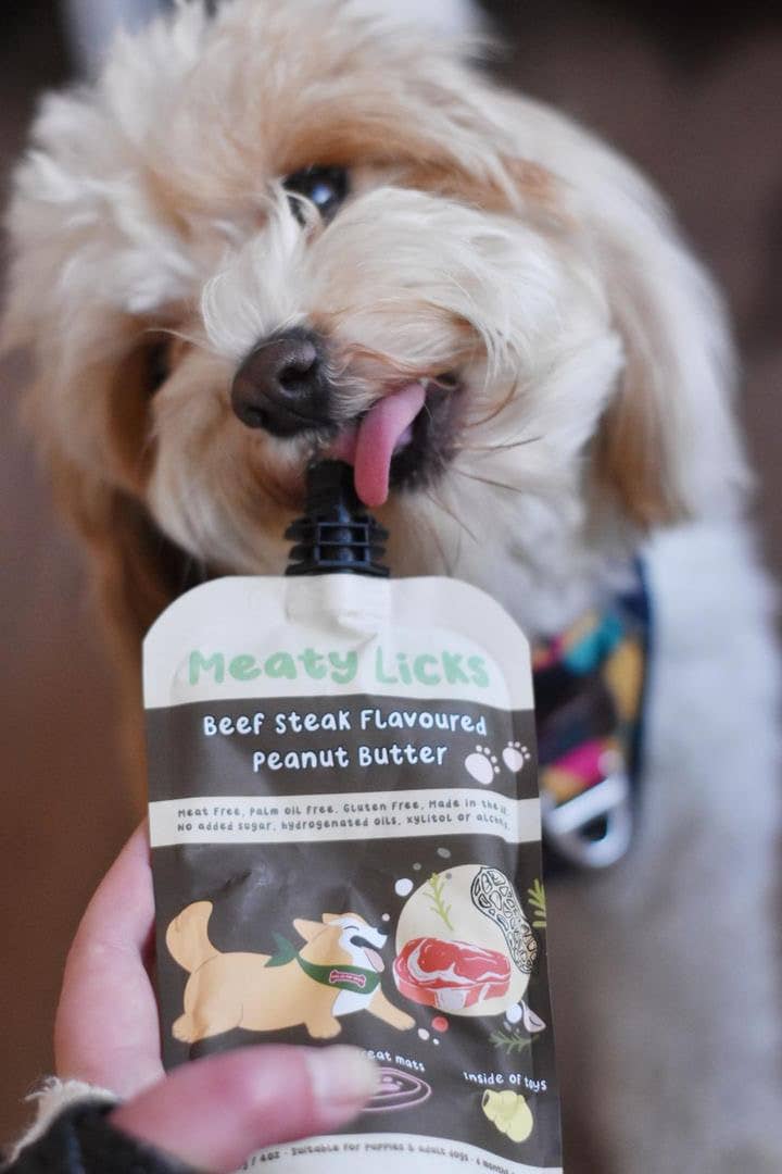 Voici Meaty Licks, une gamme haut de gamme de sachets de beurre de cacahuète végétaliens et sans gluten fabriqués dans le nord du Pays de Galles, au Royaume-Uni, spécialement pour les chiens.