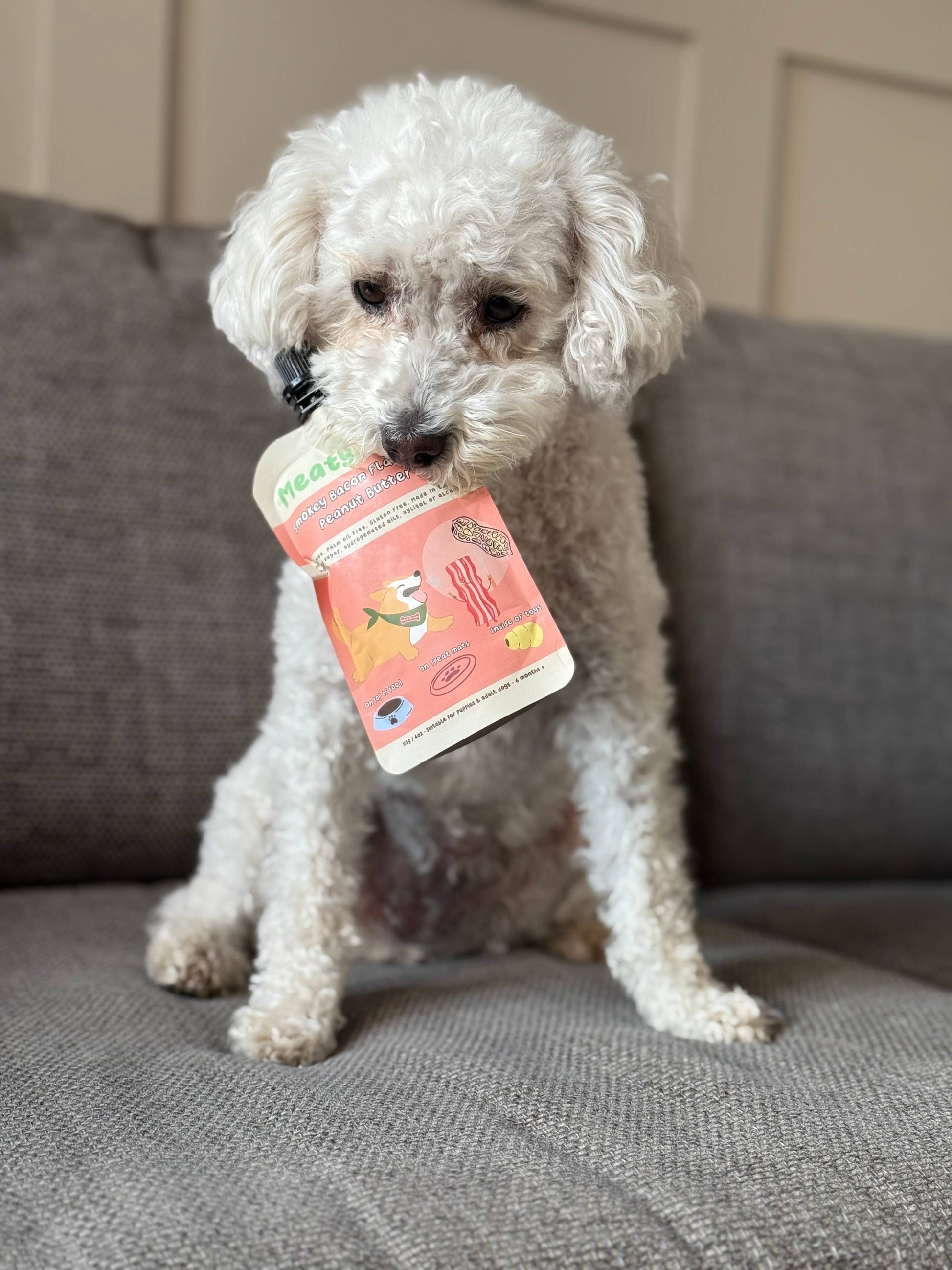 Voici Meaty Licks, une gamme haut de gamme de sachets de beurre de cacahuète végétaliens et sans gluten fabriqués dans le nord du Pays de Galles, au Royaume-Uni, spécialement pour les chiens.
